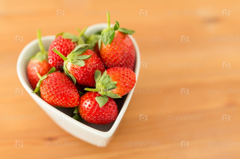 Свежая клубника в миске формы сердца