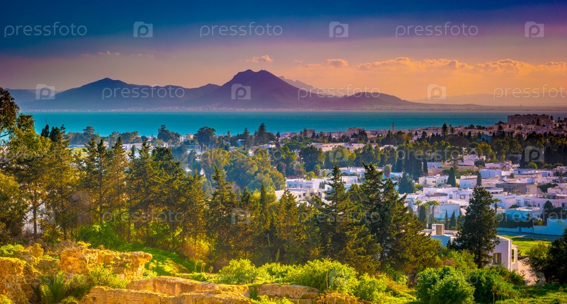 Вид с холма Бурса с древними остатками Карфагена и ландшафта