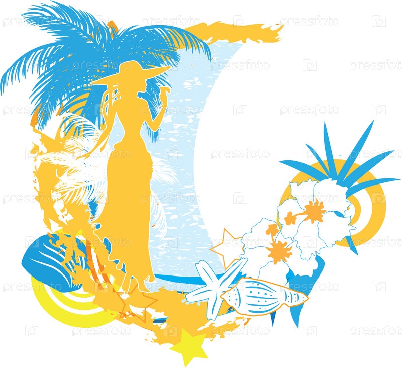 Фон с тропическими растениями и силуэтом женщины
