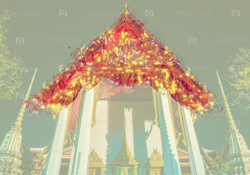 Красиво оформленные пагоды храма Ват Пхо в ночное время