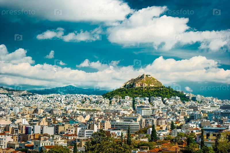 Городской пейзаж Афин и холм Ликабеттус