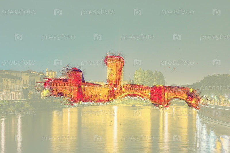 Замок Веккио в летнюю ночь в Вероне, Италия