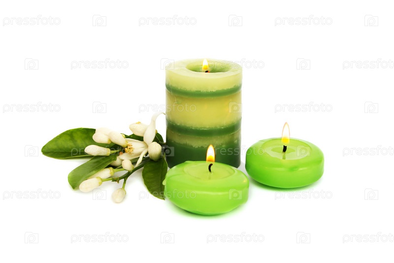 Зеленые свечи и цитрусовые цветы, изолированные на белом фоне