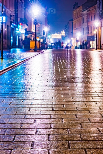 Ночная улица в Кракове, Польша