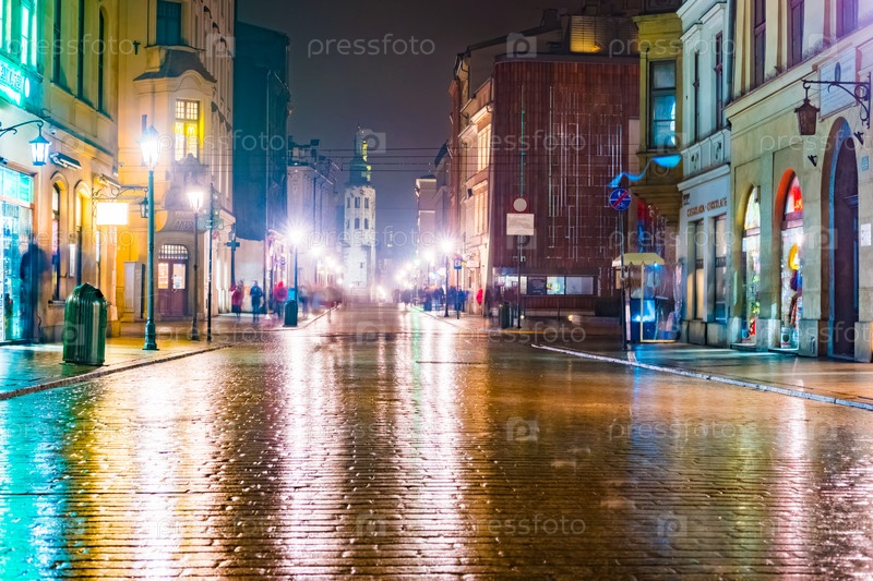 Ночная улица в Кракове, Польша