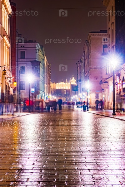 Ночная улица в Кракове, Польша