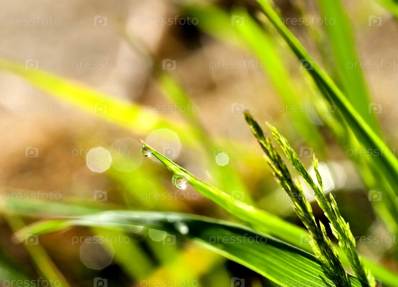 Капля утренней росы на траве