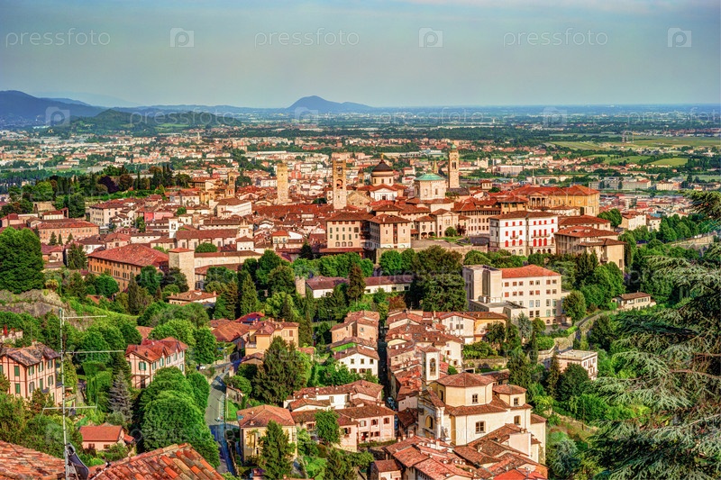 Старый город Читта-Альта Бергамо с холма Сан-Виджилио