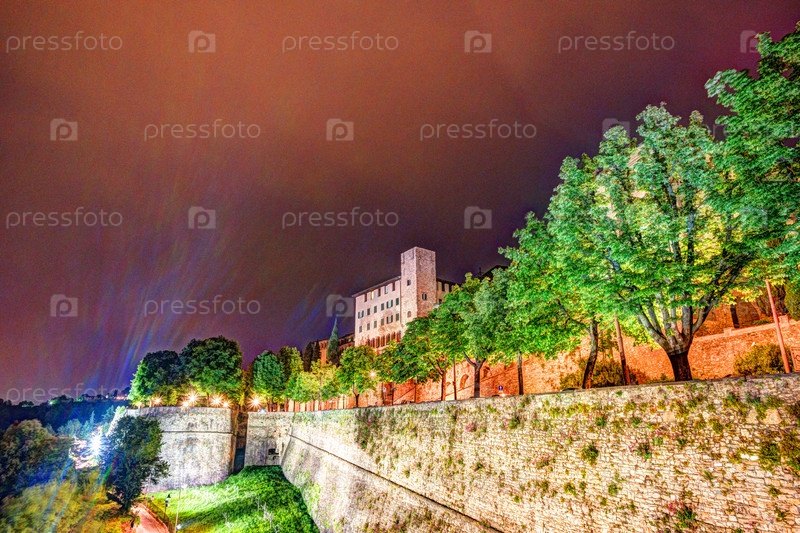 Каменные стены замка Ла Рокка в старом городе Бергамо