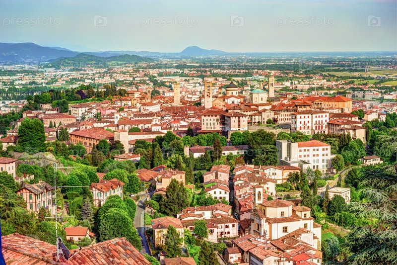 Старый город Читта-Альта Бергамо с холма Сан-Виджилио