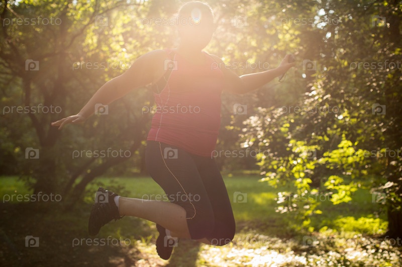 Толстая женщина прыгает