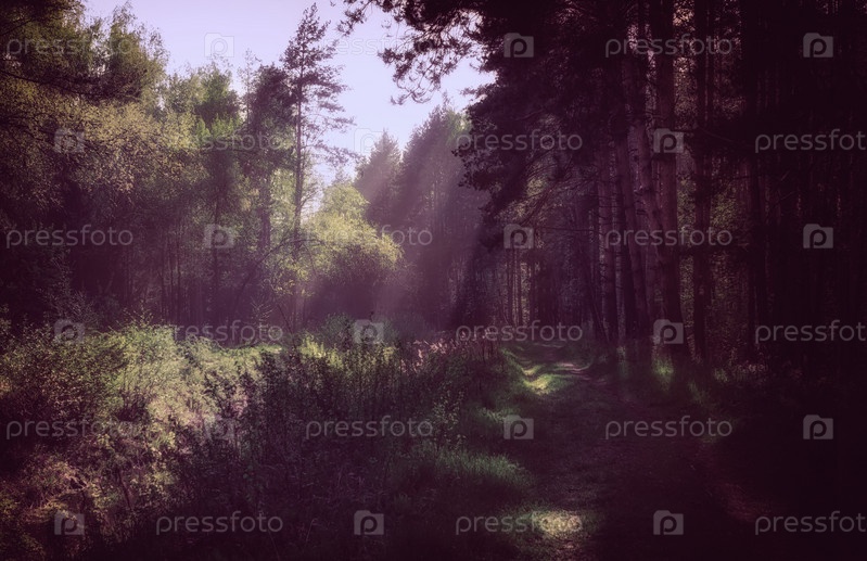 Солнечные лучи в утреннем лесу