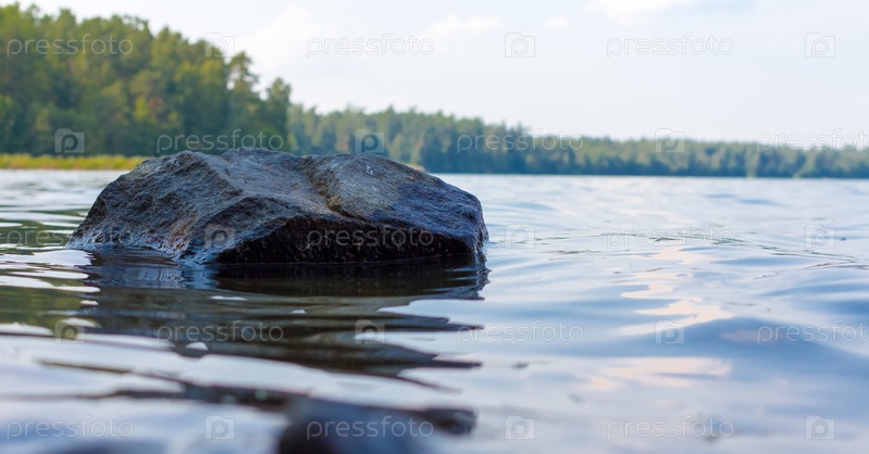 Камень, выступающий из спокойной воды в озере