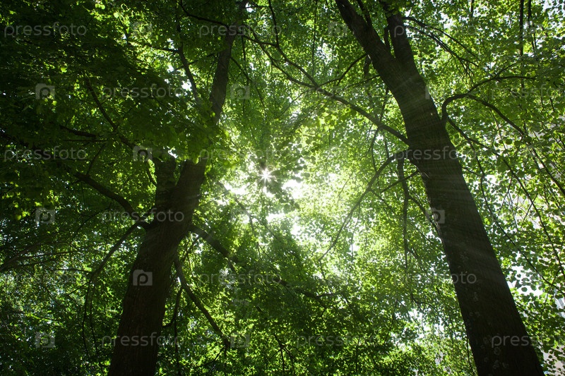 Солнечный летний лиственный лес