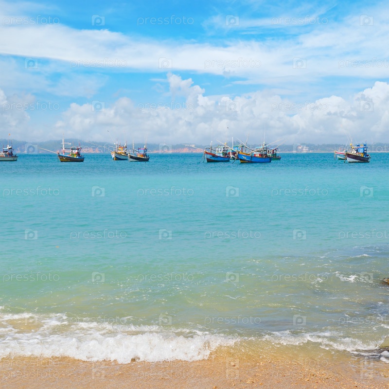 Красивый морской пейзаж с рыбацкими лодками на воде