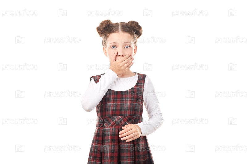 Испуганная школьница закрыла рот ладонями