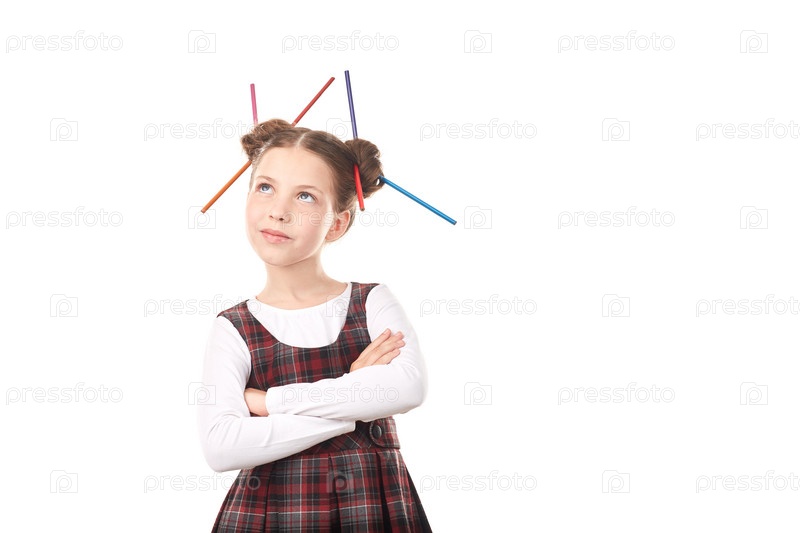 Школьница с карандашами в волосах