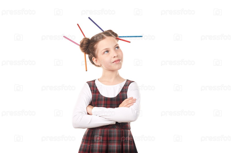 Школьница с карандашами в волосах