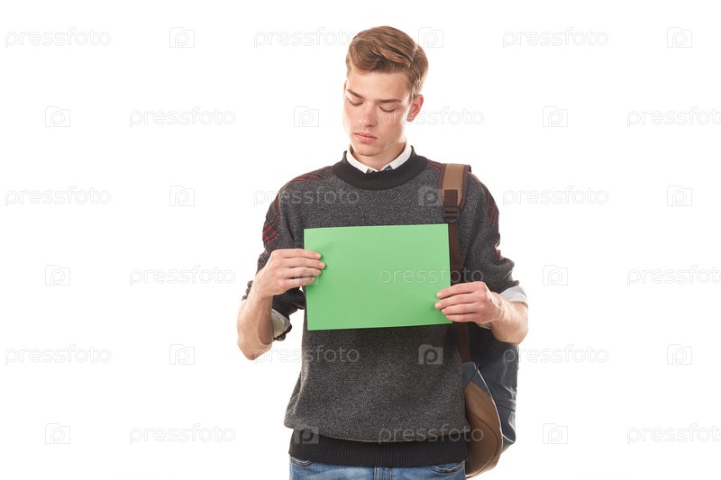 Студент колледжа с плакатом
