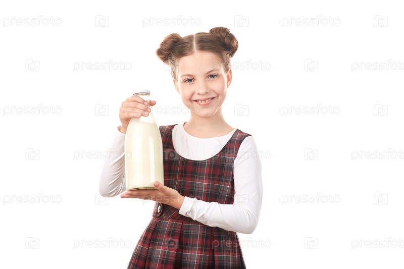Школьница с бутылкой молока