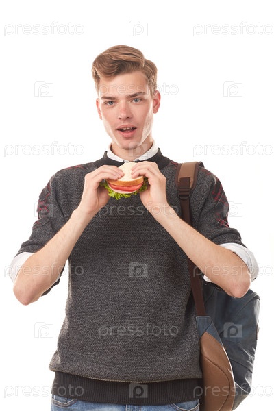 Студент ест бутерброд