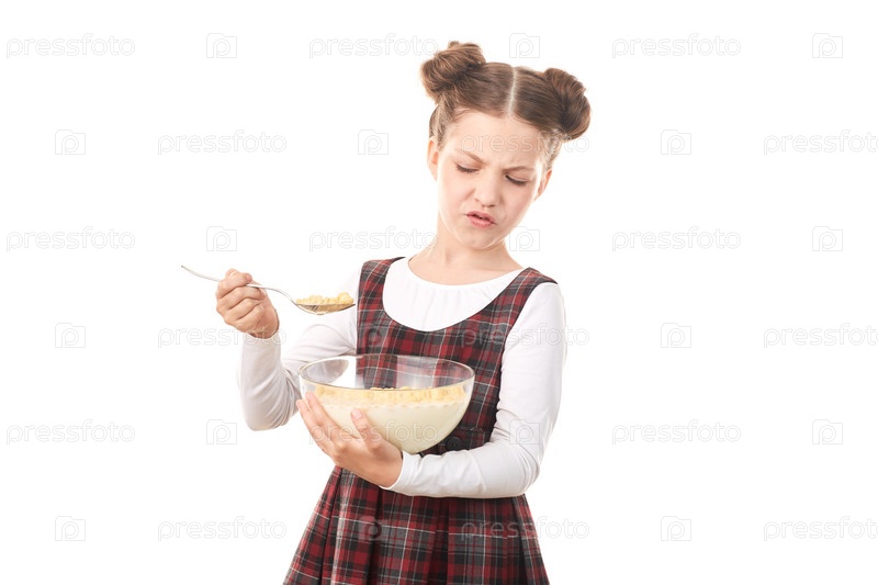Девочка не любит хлопья с молоком