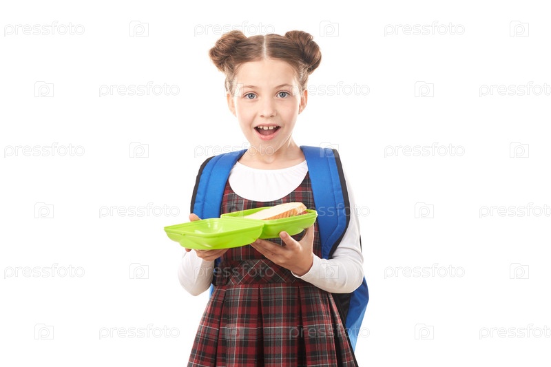 Школьница с коробкой для завтрака