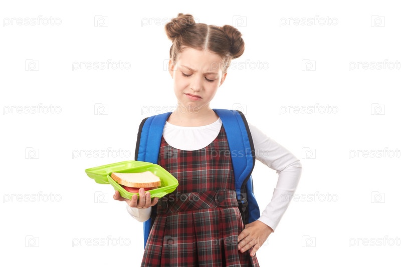 Школьница с коробкой для завтрака