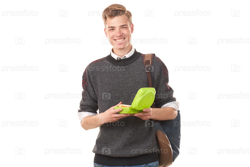 Студент средней школы с ланчбоксом