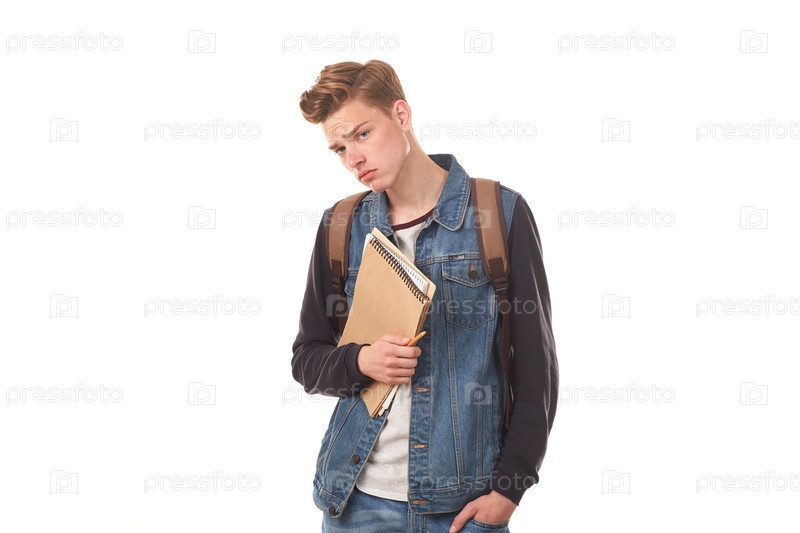 Школьник с блокнотами