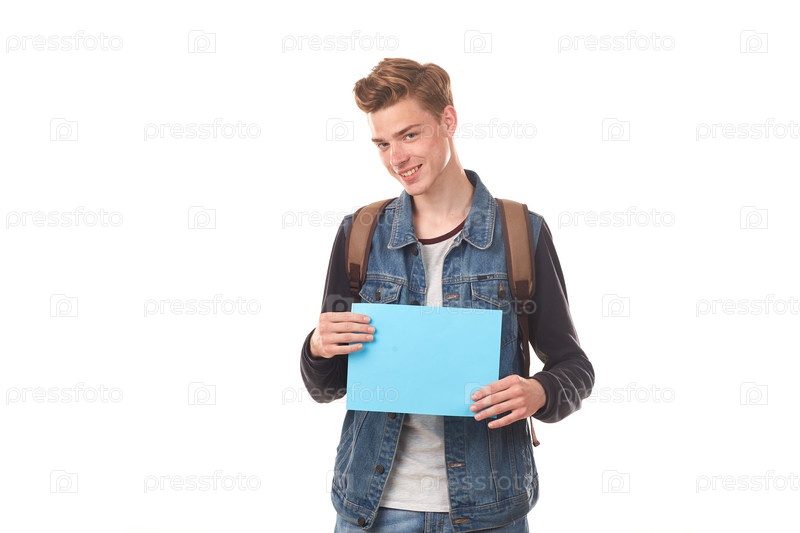 Школьник с пустым плакатом