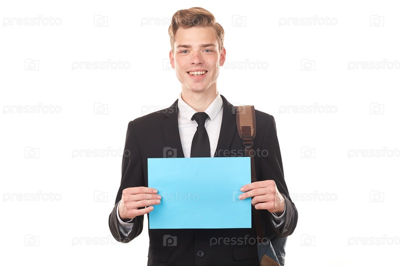 Студент с пустым плакатом