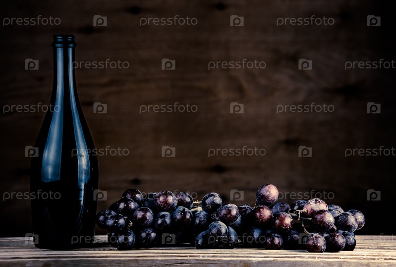 Бутылка и виноград