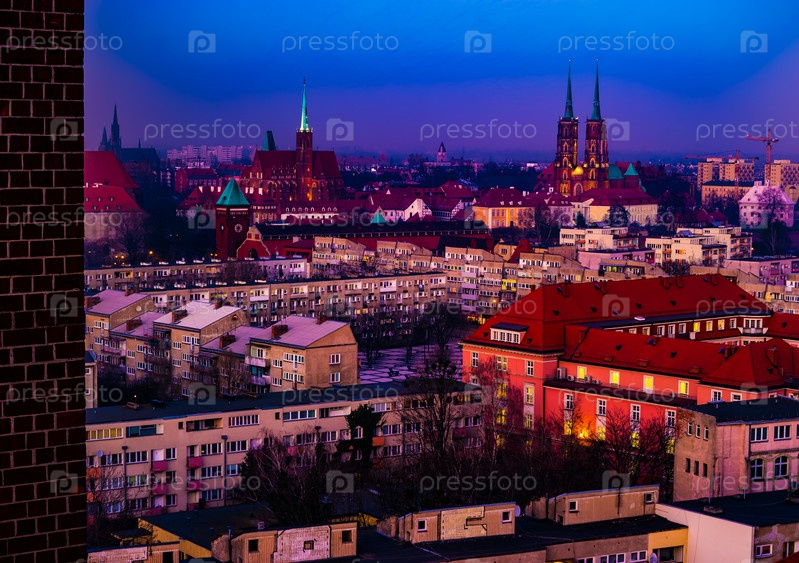 Старый город Вроцлав в ночное время