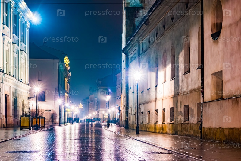 Ночная улица в Кракове, Польша