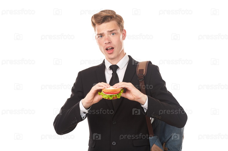 Студент колледжа ест бутерброд