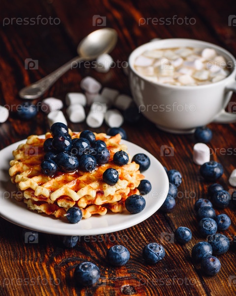 Вафли с голубикой и чашкой какао