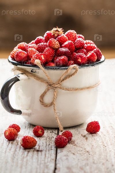 Спелая лесная земляника в белой чашке