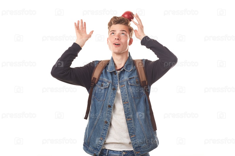 Школьник с яблоком
