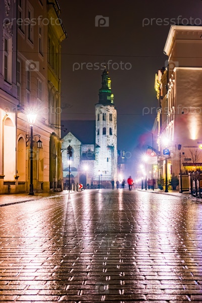 Ночная улица в Кракове, Польша