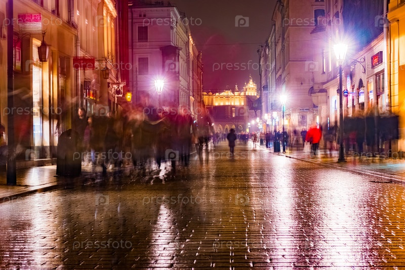Ночная улица в Кракове, Польша
