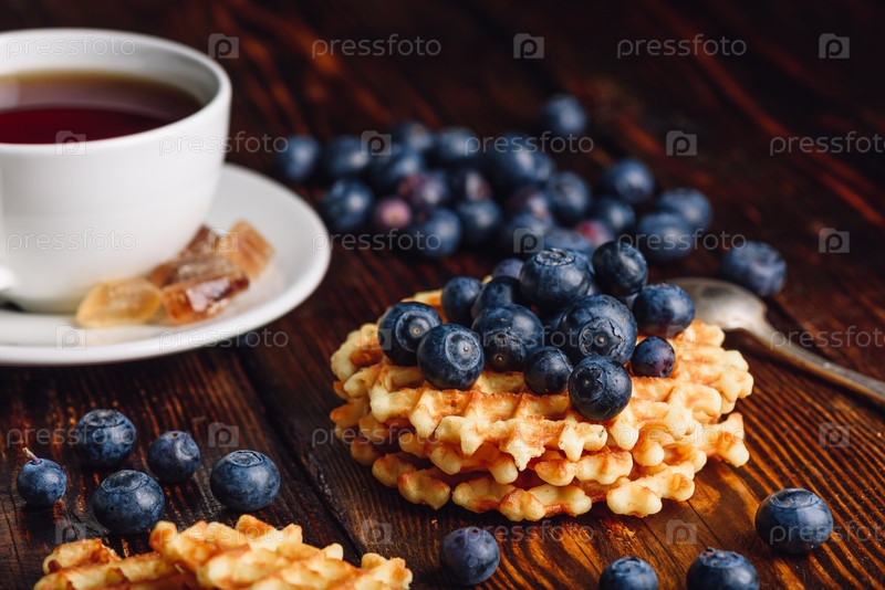 Самодельные вафли с голубикой и чашкой чая