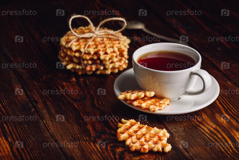Завтрак с вафлями и чаем