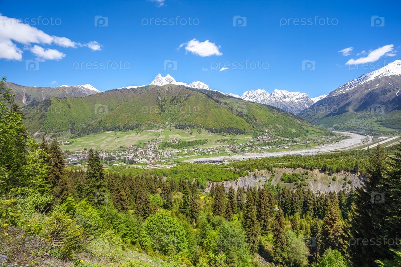 Горы Сванети, гора Ушба и город Местиа, Грузия
