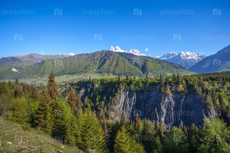 Горы Сванети, гора Ушба и город Местиа, Грузия