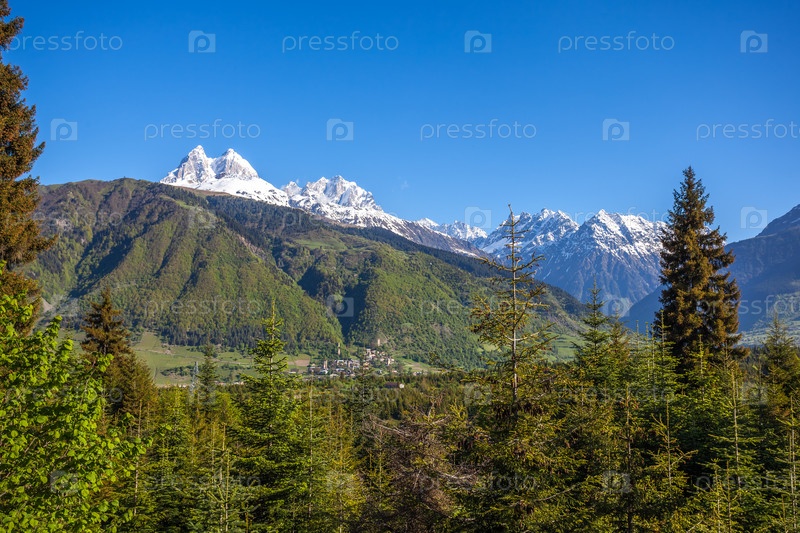Горы Сванети, гора Ушба и город Местиа, Грузия