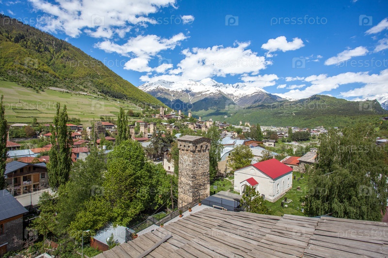 Село Местиа в районе Сванетии, Кавказ в Грузии