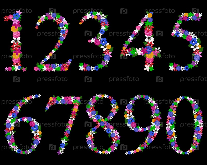 Цифры из цветов на черном фоне для использования в веб-печати и дизайне