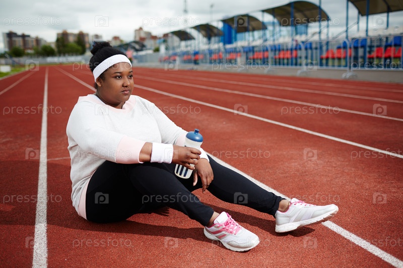 Толстая женщина перед тренировкой