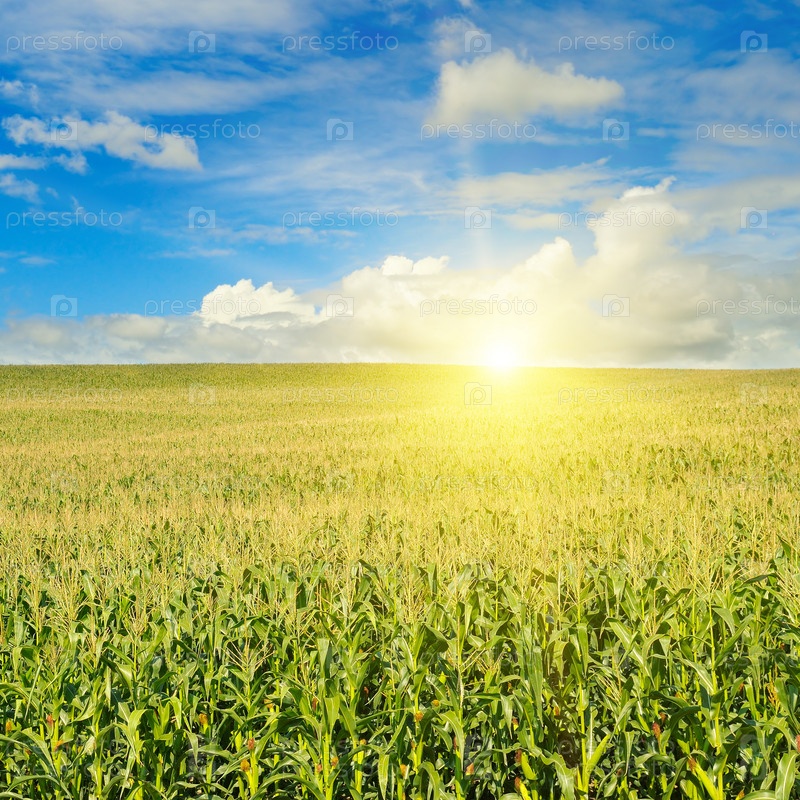 Зеленое поле с кукурузой